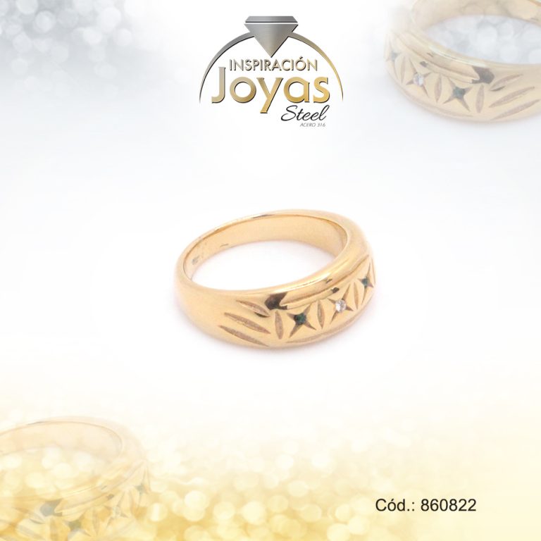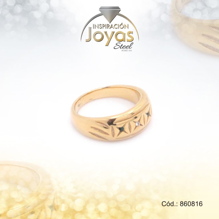 Anillo de Acero Caballero Circón Dorado Solitario BlancoTalla 10 – 860863