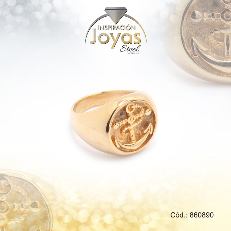 Anillo de Acero Caballero Dorado Vintage, Ancla Talla 11 – 860890