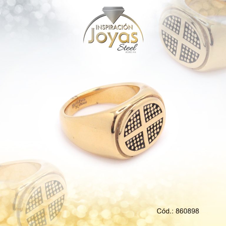 Anillo de Acero Caballero Esmalte Dorado Vintage, Cruz NegroTalla 11 – 860898