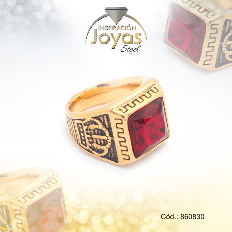 Anillo de Acero Caballero Pierdra Dorado Vintage, Rey Crown RojoTalla 8 – 860825