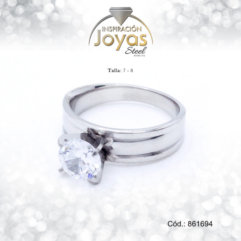 Anillo Acero Solitario Repuje/Circon Plateado Blanco Talla: 8 – 86169980