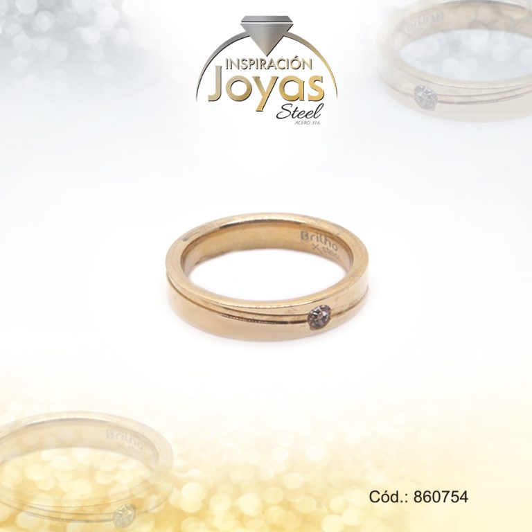 Anillo de Acero Matrimonio Circón Dorado Talla 11 – 860763