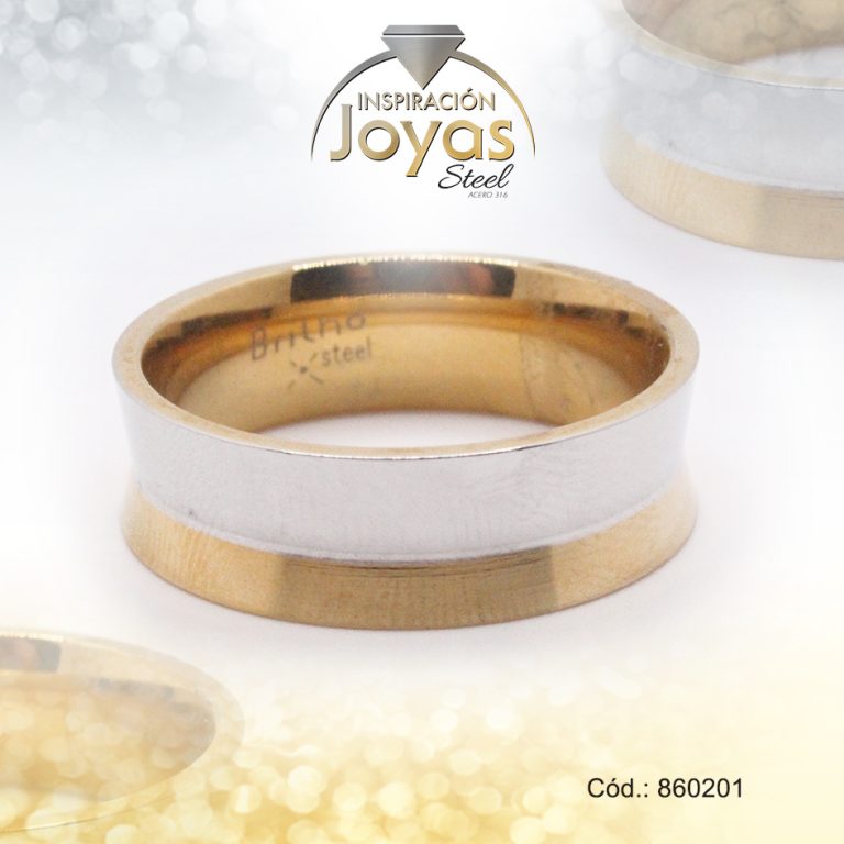 Anillo de Acero Matrimonio Dorado Repuje Talla 9 – 860619