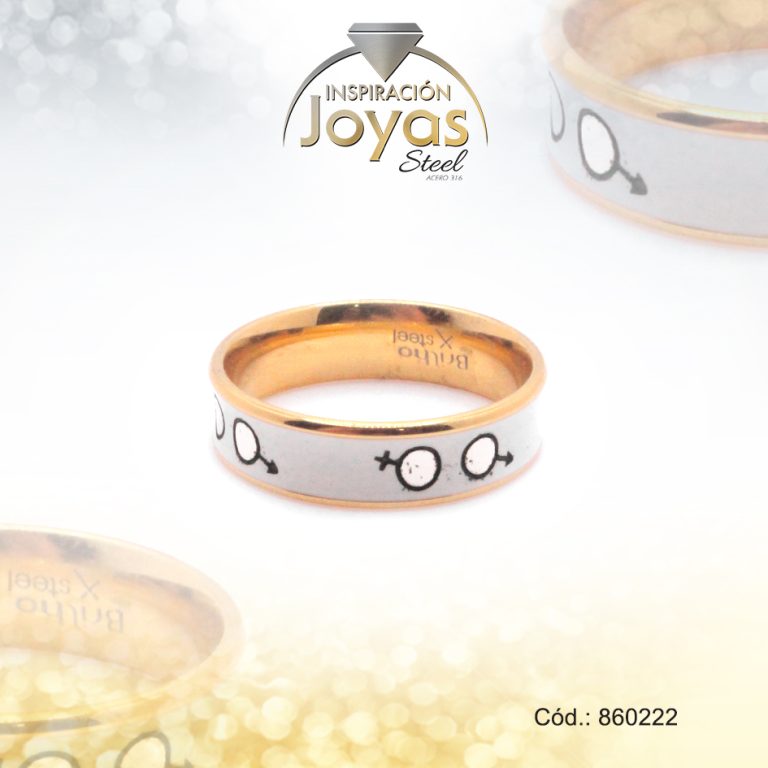 Anillo de Acero Matrimonio Esmalte Dorado Símbolo de Género Blanco Talla 9 – 860222