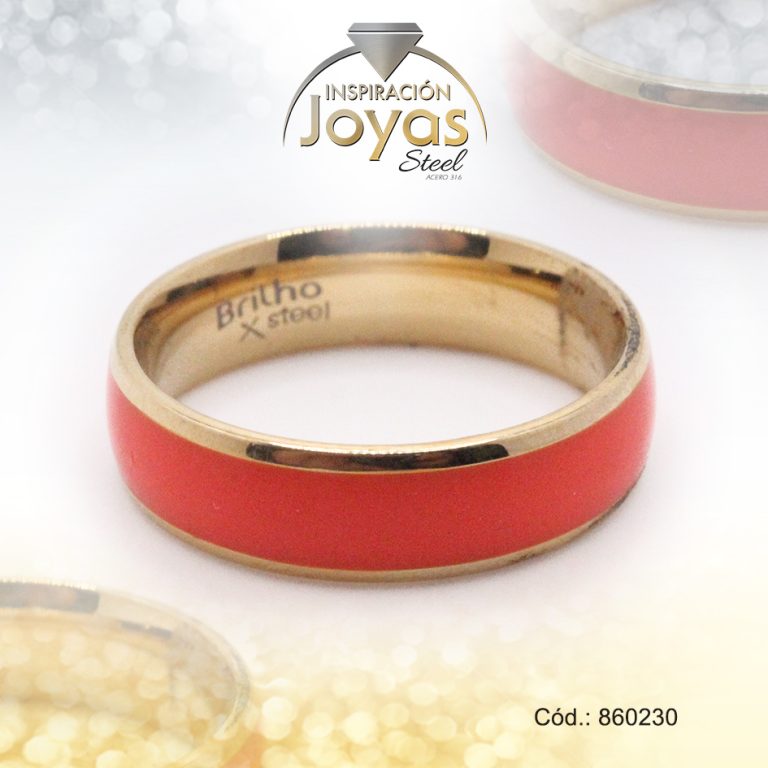 Anillo de Acero Matrimonio Esmalte Dorado Línea Anaranjado Talla 10 – 860230