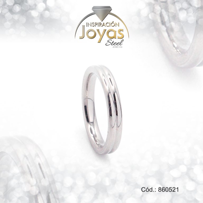 Anillo de Acero Matrimonio Plateado Línea Talla 8 – 860522