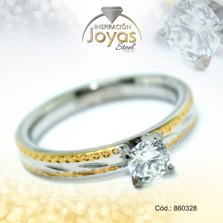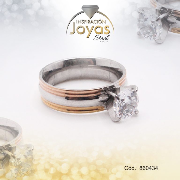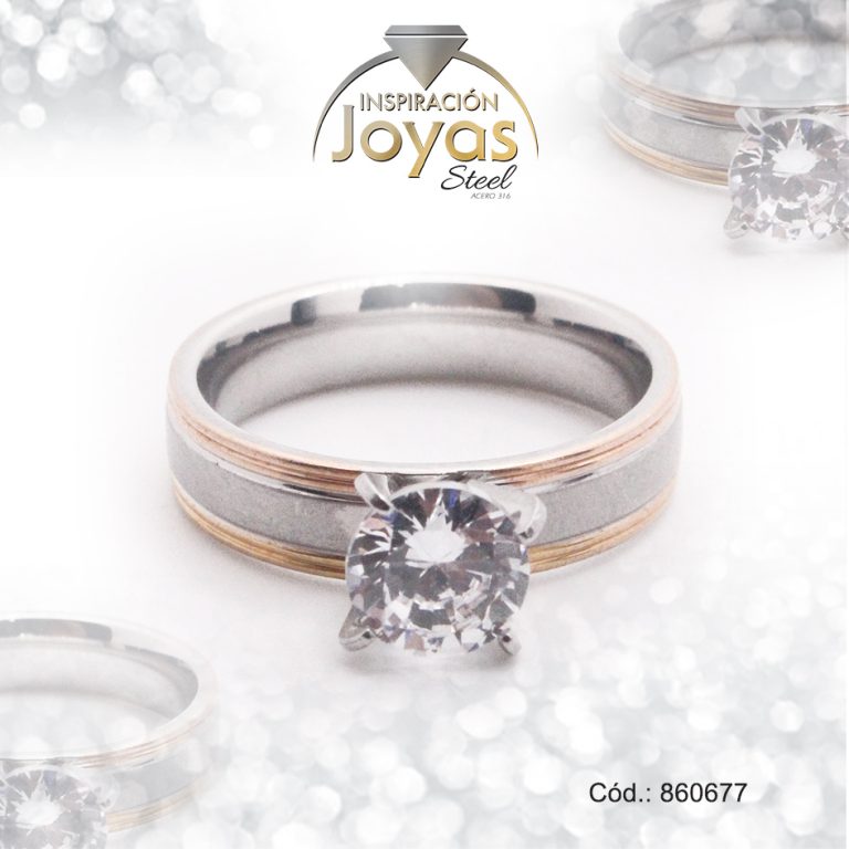 Anillo de Acero Solitario Circón 2 Tonos Círculo Talla 9 – 860677