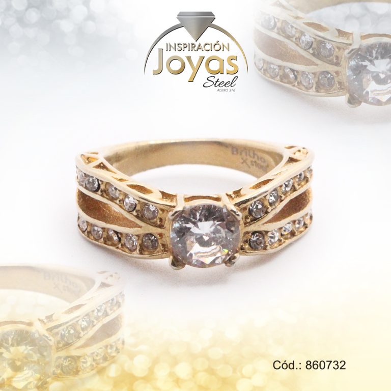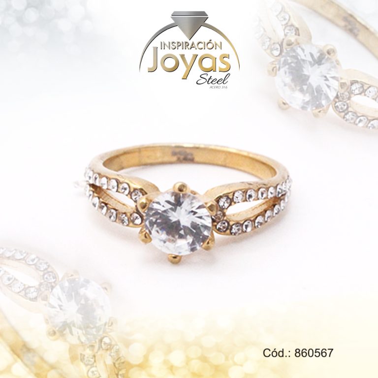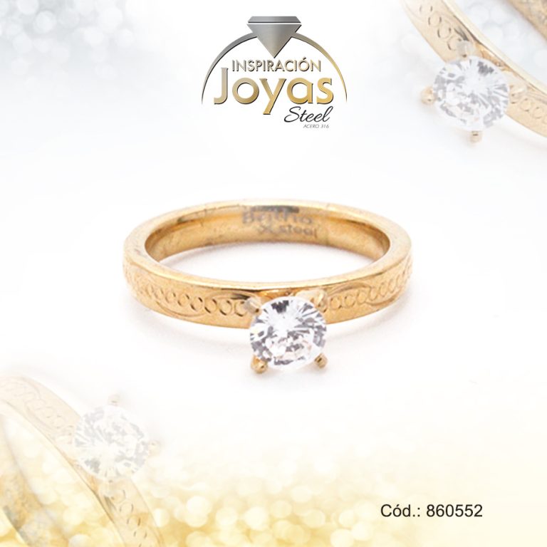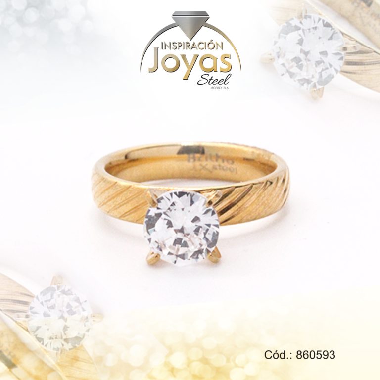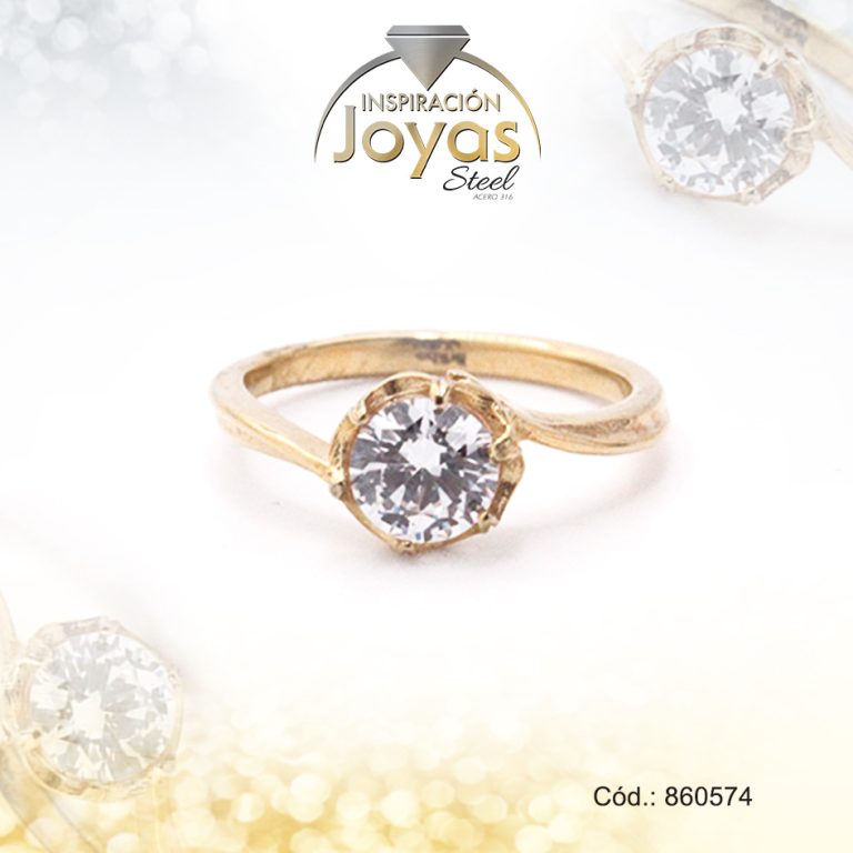 Anillo de Acero Solitario Circón Dorado Círculo Talla 5 – 860790