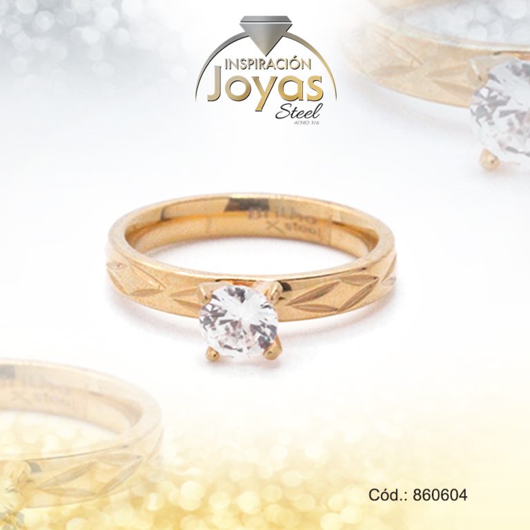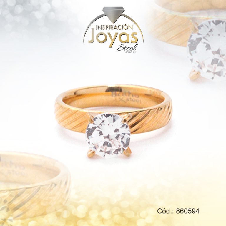 Anillo de Acero Solitario Circón Dorado Círculo Talla 7 – 860604