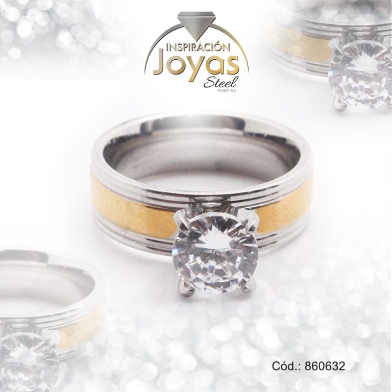 Anillo de Acero Solitario Circón Dorado Círculo Talla 7 – 860553