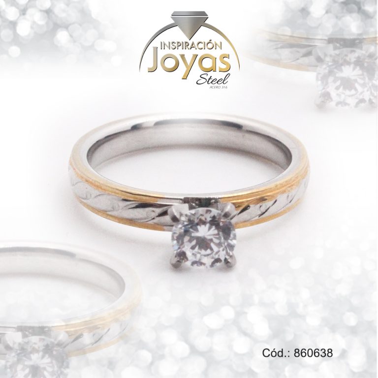 Anillo de Acero Solitario Circón Dorado Círculo Talla 7 – 860614