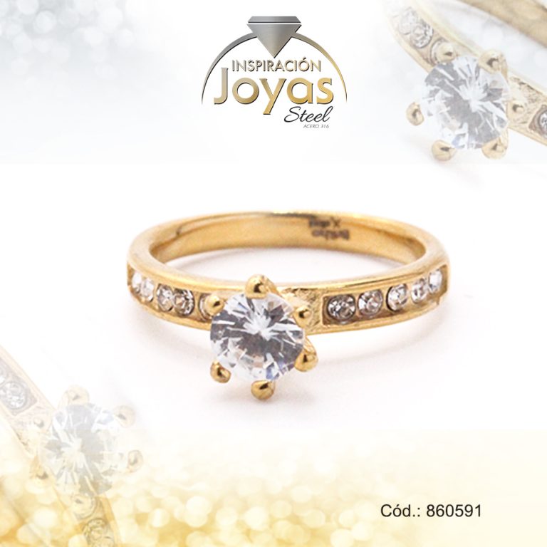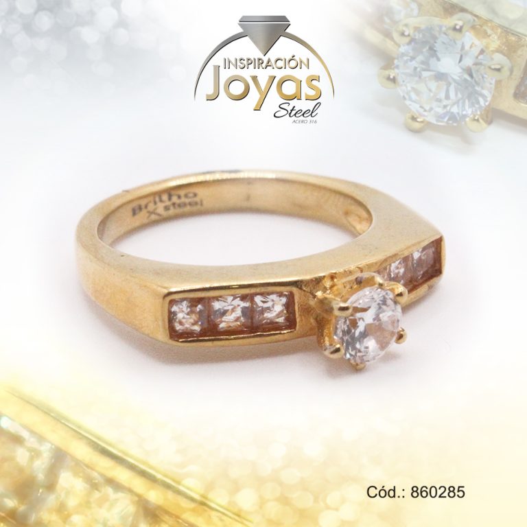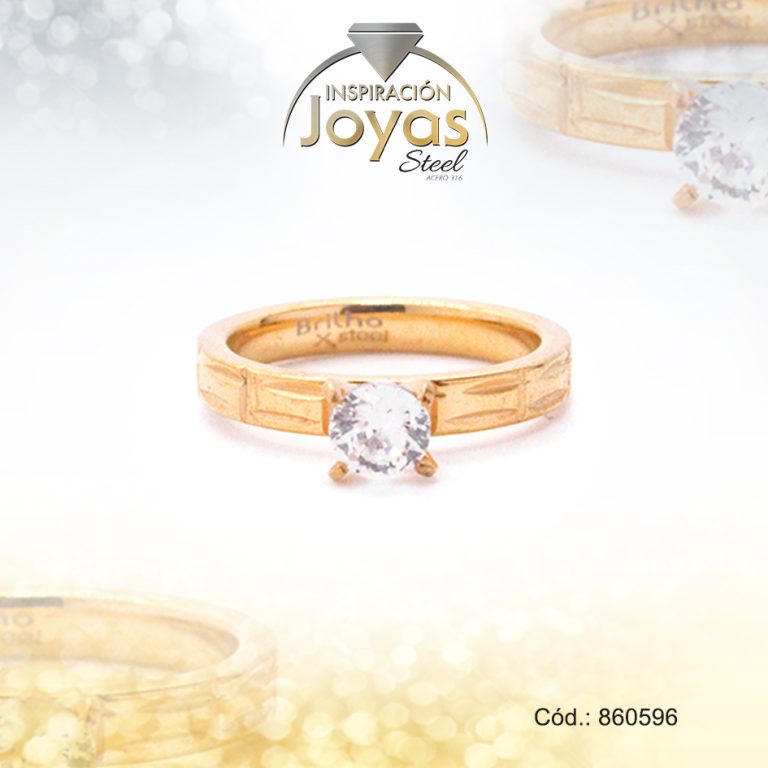 Anillo de Acero Solitario Circón Dorado Círculo Talla 7 – 860730