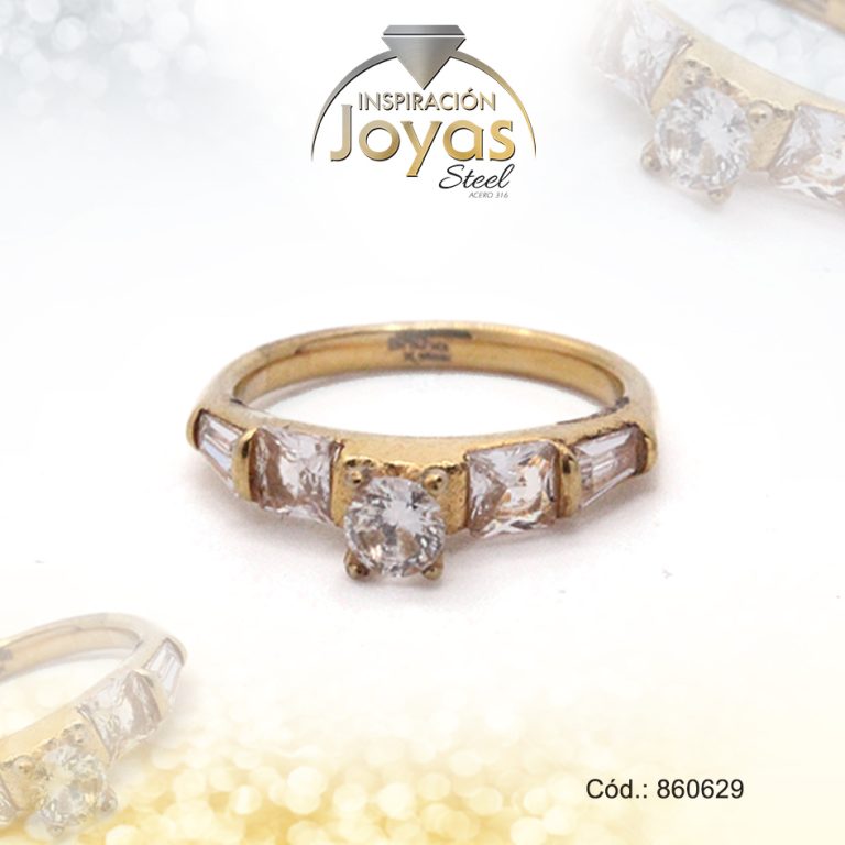 Anillo de Acero Solitario Circón Dorado Círculo Talla 9 – 860572