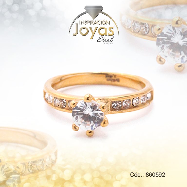 Anillo de Acero Solitario Circón Dorado Círculo Talla 9 – 860646