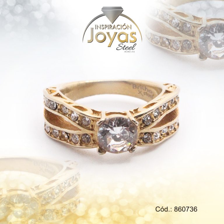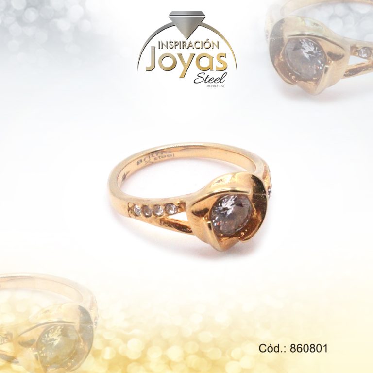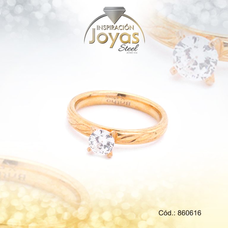 Anillo de Acero Solitario Circón Dorado Círculo Talla 9 – 860606