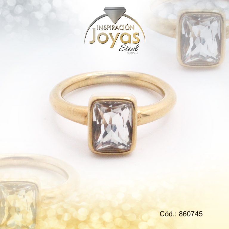 Anillo de Acero Solitario Circón Dorado Cuadrado Talla 6 – 860745