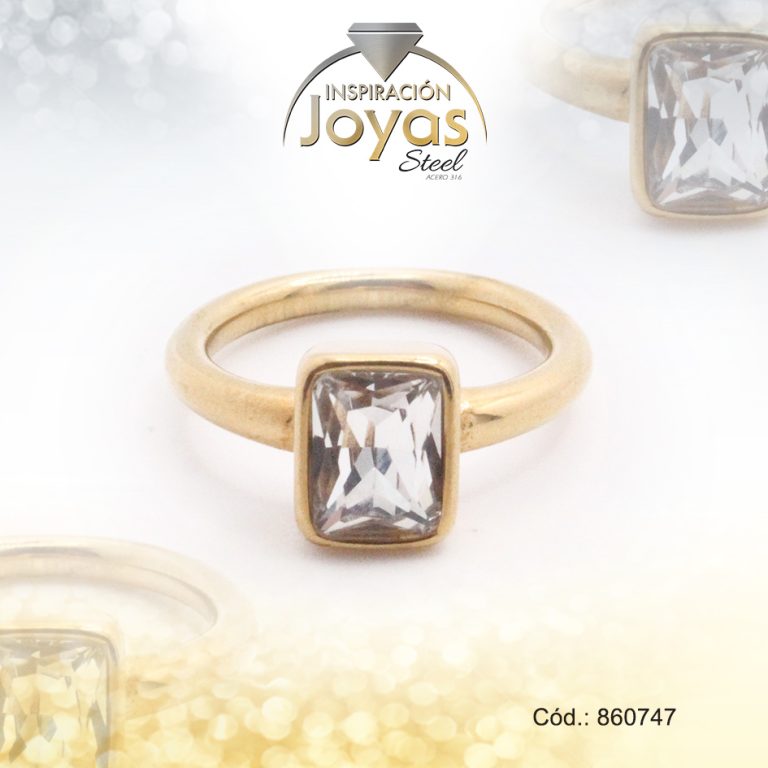 Anillo de Acero Solitario Circón Dorado Cuadrado Talla 8 – 860747