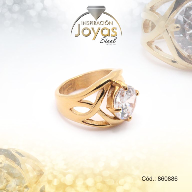 Anillo de Acero Solitario Circón Dorado Óvalo Talla 4 – 860789
