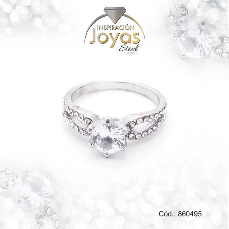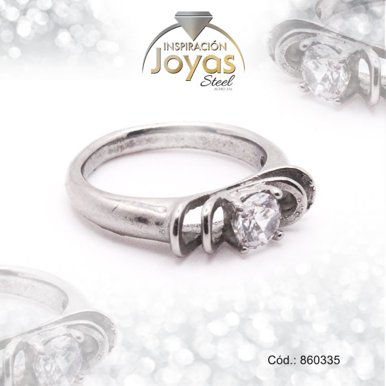 Anillo de Acero Solitario Circón Plateado Círculo Talla 6 – 860517