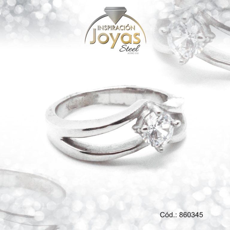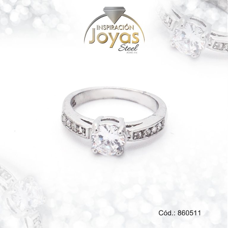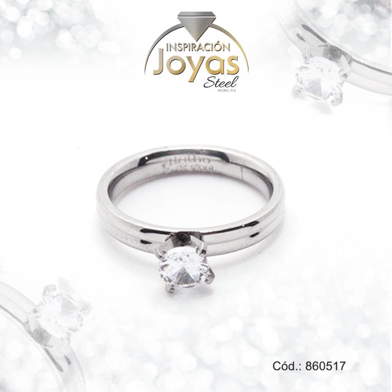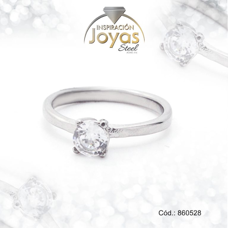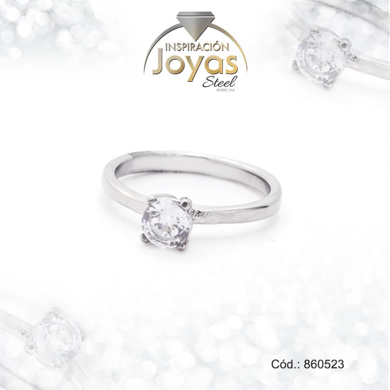 Anillo de Acero Solitario Circón Plateado Círculo Talla 6 – 860355