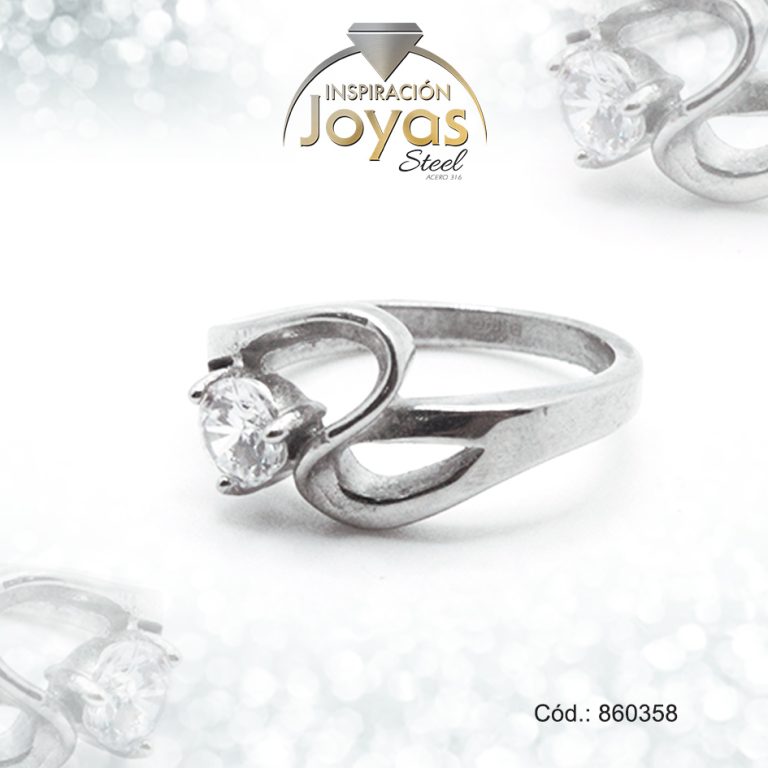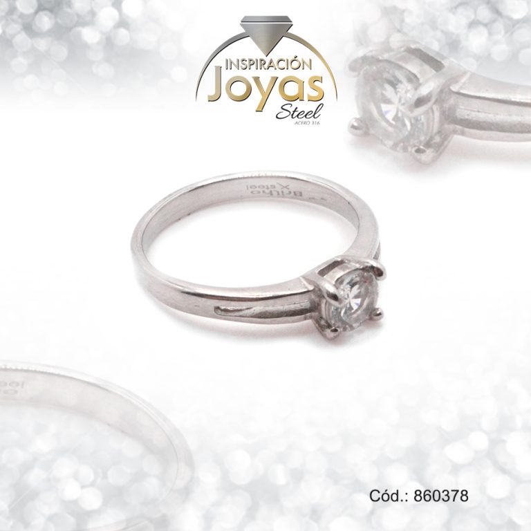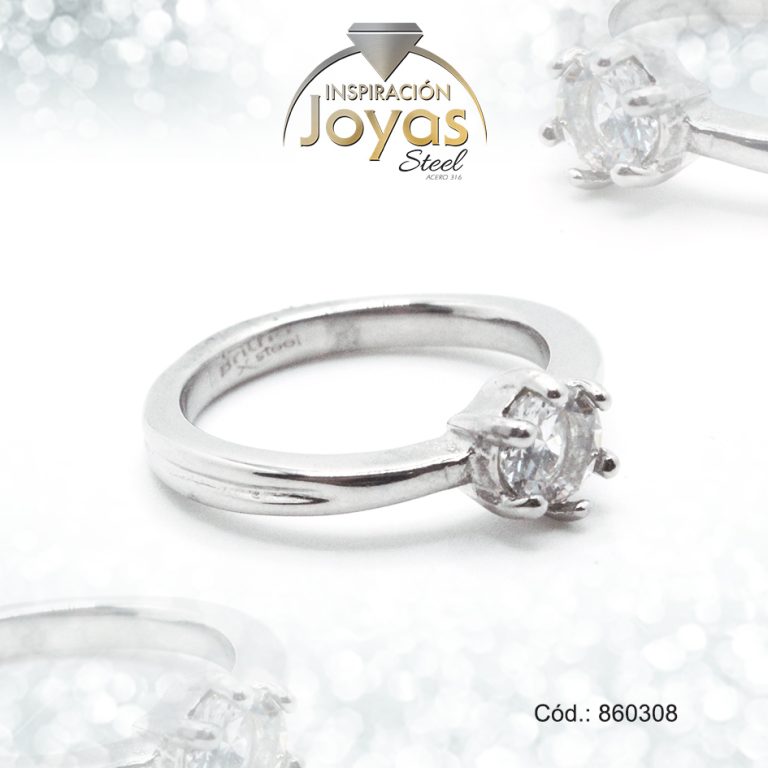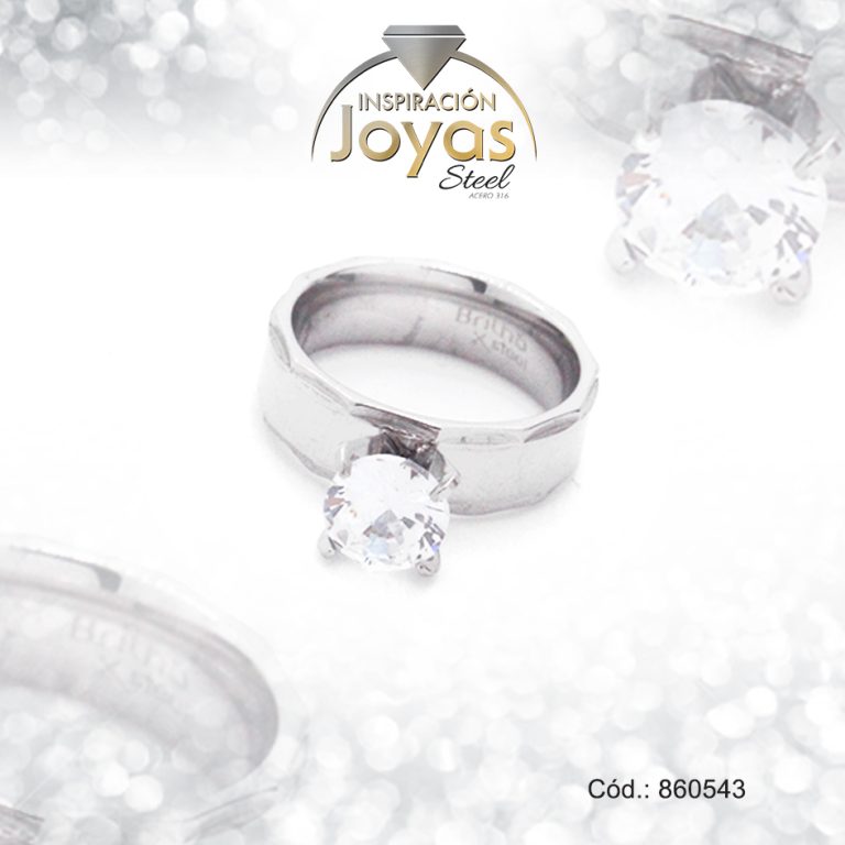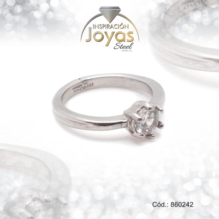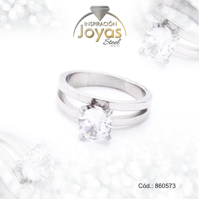 Anillo de Acero Solitario Circón Plateado Círculo Talla 9 – 860250