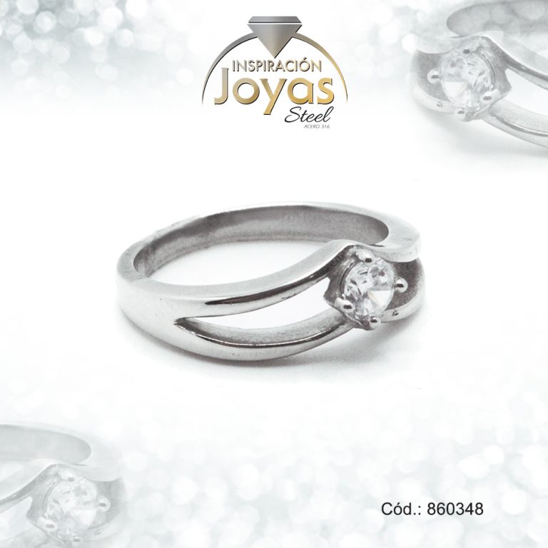 Anillo de Acero Solitario Circón Plateado Círculo Talla 9 – 860348