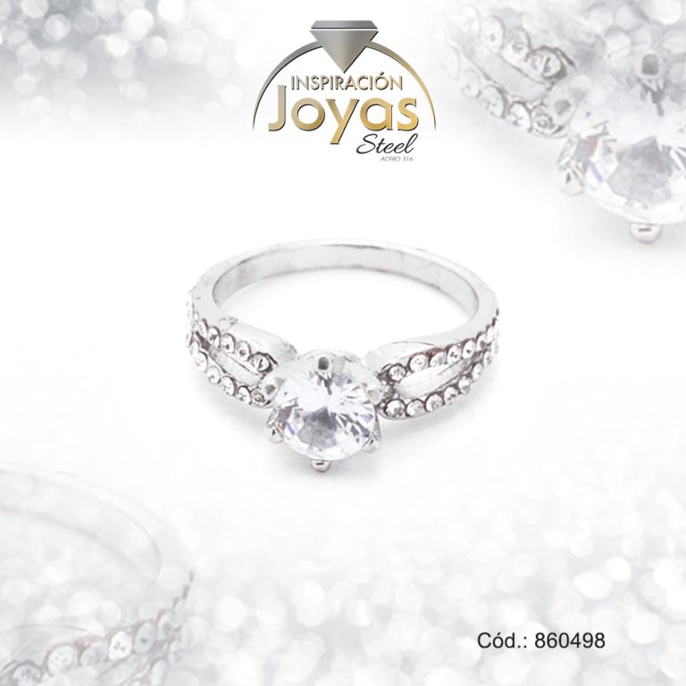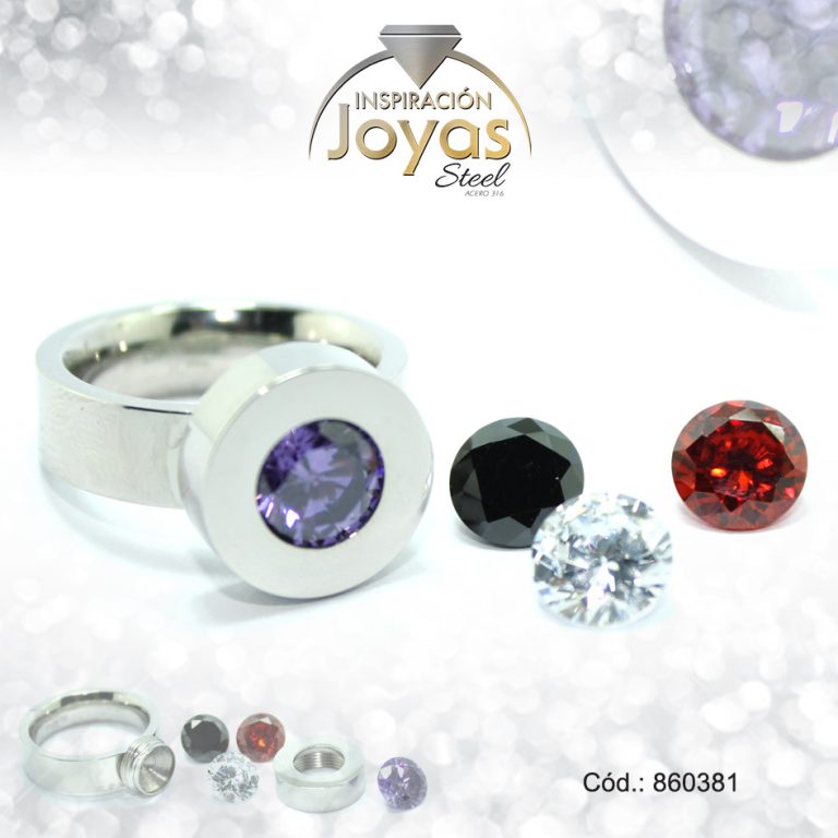 Anillo de Acero Solitario Circón Plateado Intercambiable Talla 6 – 860381