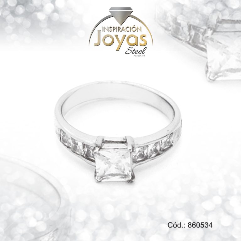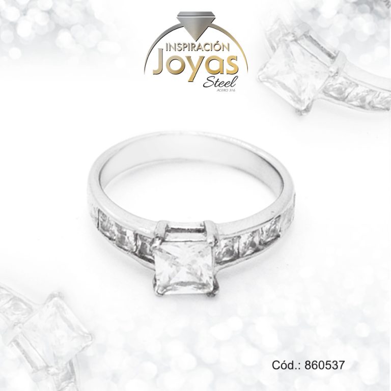 Anillo de Acero Solitario Circón Plateado Cuadrado Talla 8 – 860538