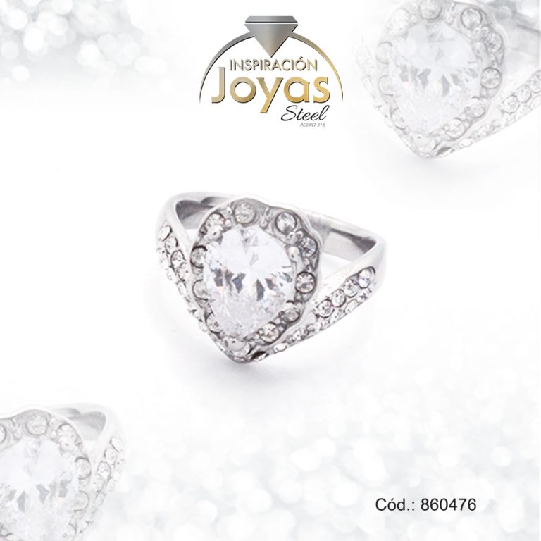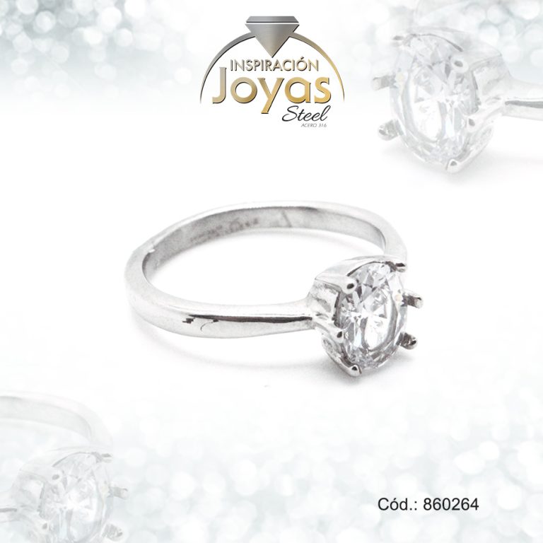 Anillo de Acero Solitario Circón Plateado Óvalo Talla 8 – 860265