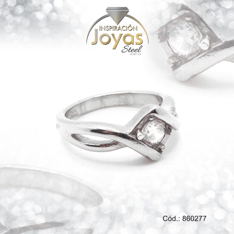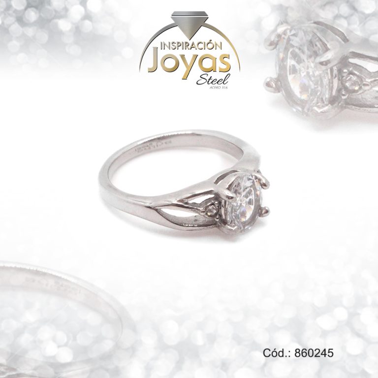 Anillo de Acero Solitario Circón Plateado Rombo Talla 6 – 860247