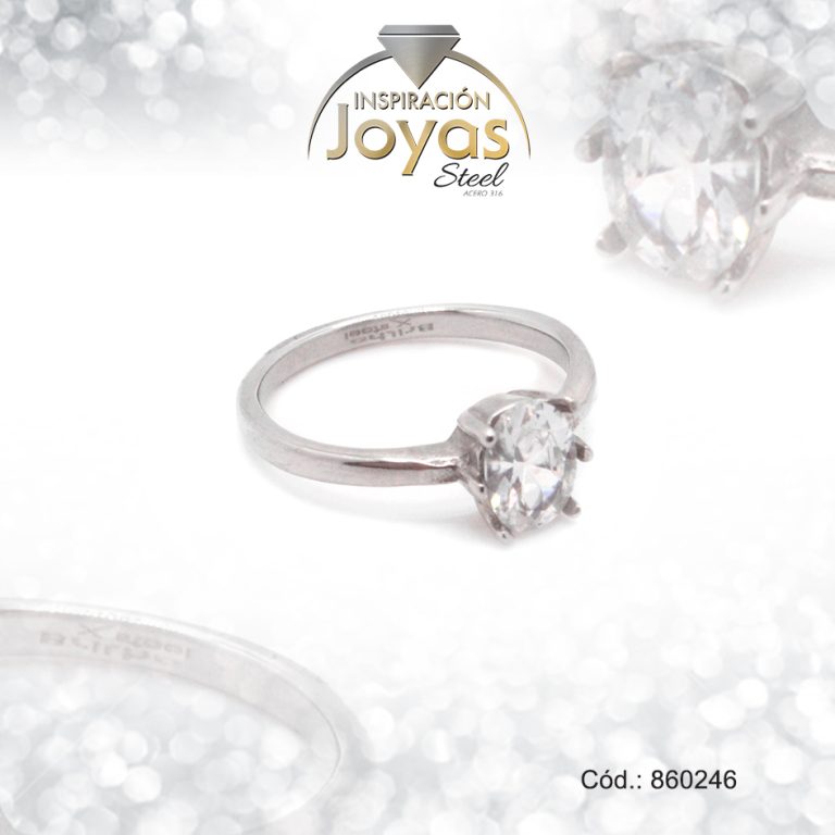 Anillo de Acero Solitario Circón Plateado Óvalo Talla 9 – 860246