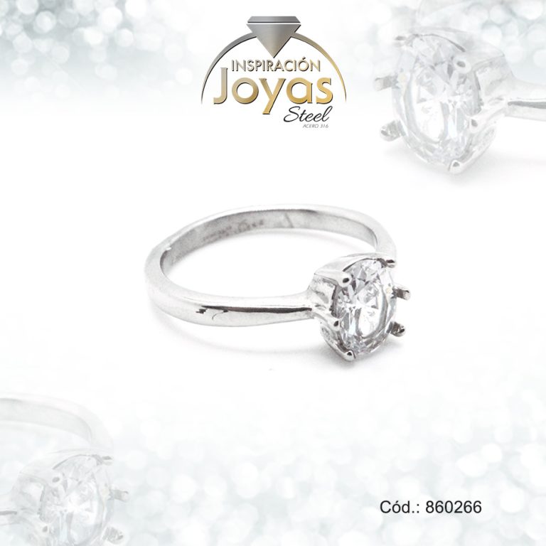 Anillo de Acero Solitario Circón Plateado Óvalo Talla 9 – 860266