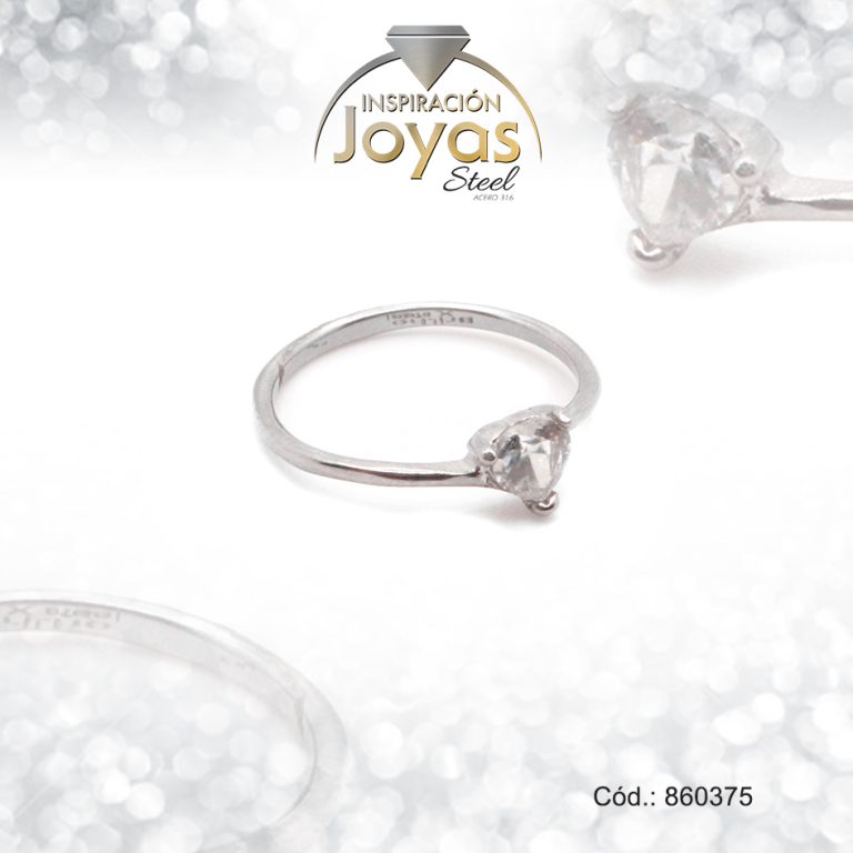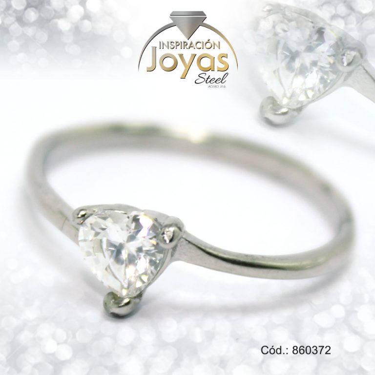 Anillo de Acero Solitario Circón Plateado Rombo Talla 5 – 860370