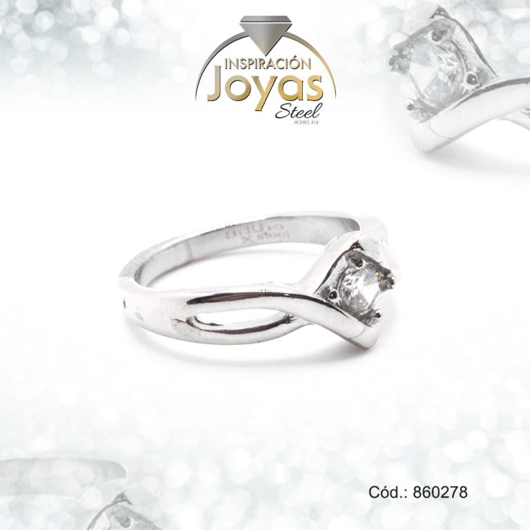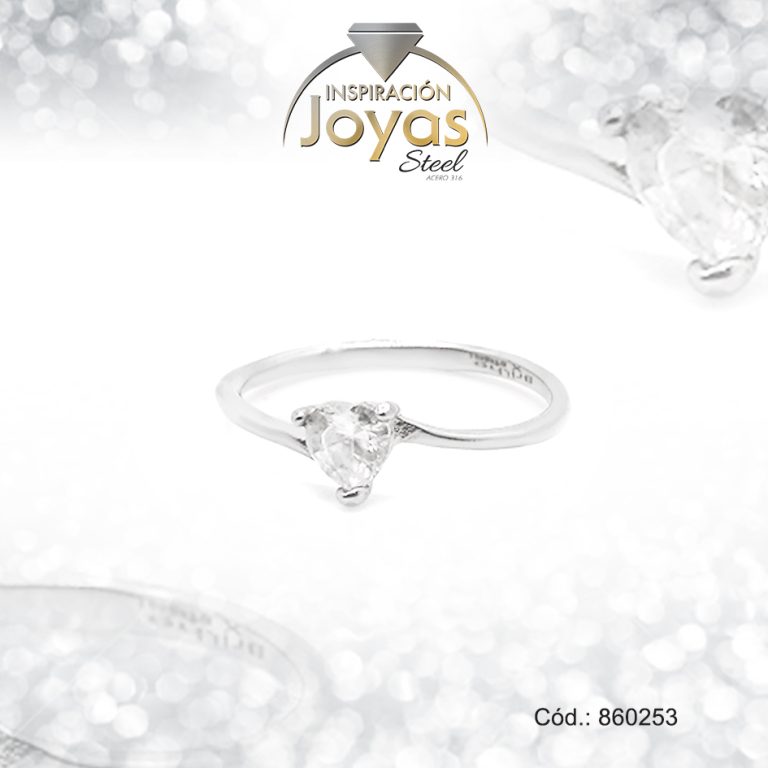 Anillo de Acero Solitario Circón Plateado Rombo Talla 8 – 860253