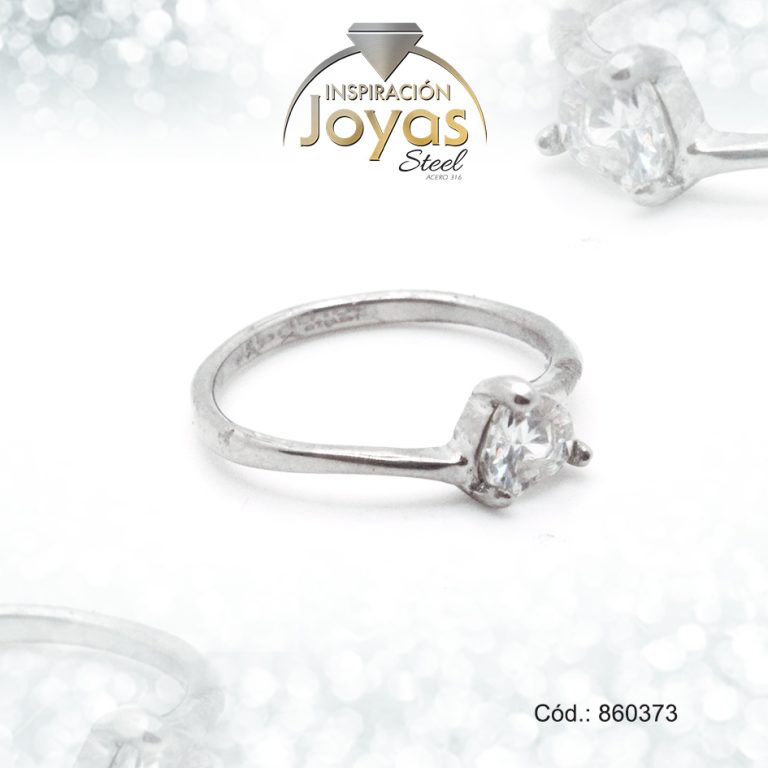 Anillo de Acero Solitario Circón Plateado Rombo Talla 8 – 860373