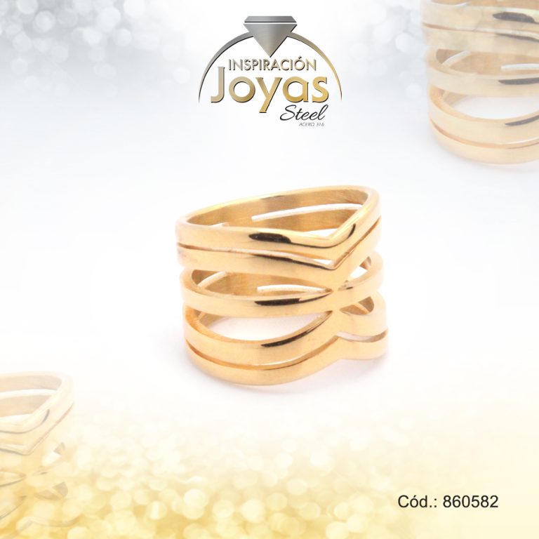 Anillo de Acero Variado Dorado Línea Talla 9 – 860582