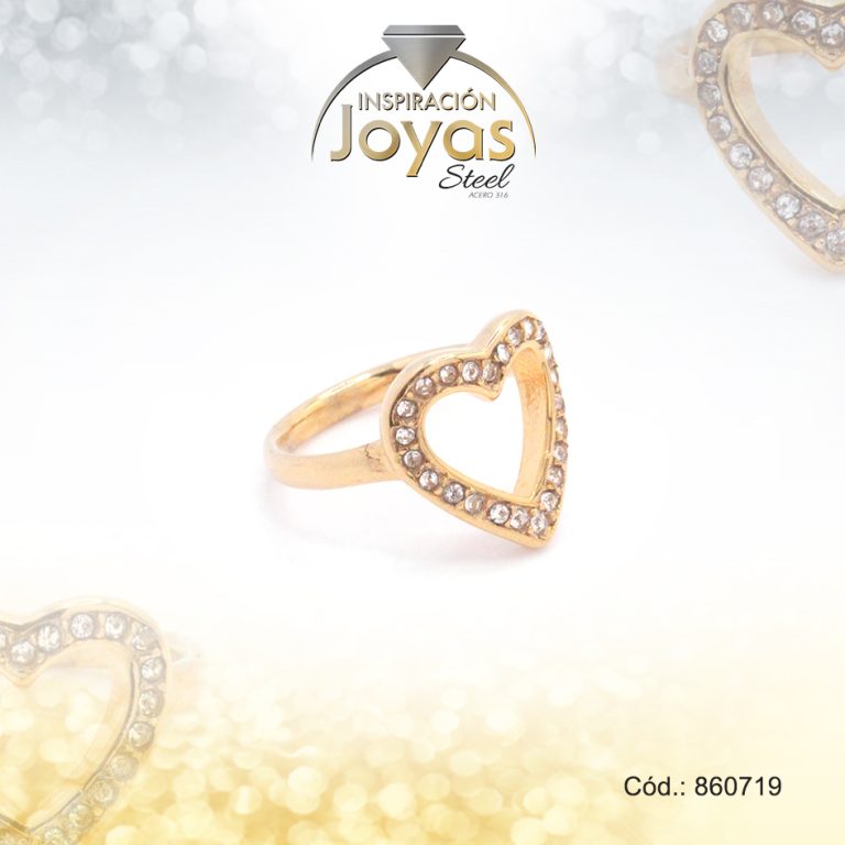 Anillo de Acero Variado Circón Dorado Corazón Talla 7 – 860719