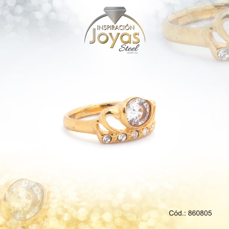 Anillo de Acero Variado Circón Dorado Doble Talla 5 – 860903