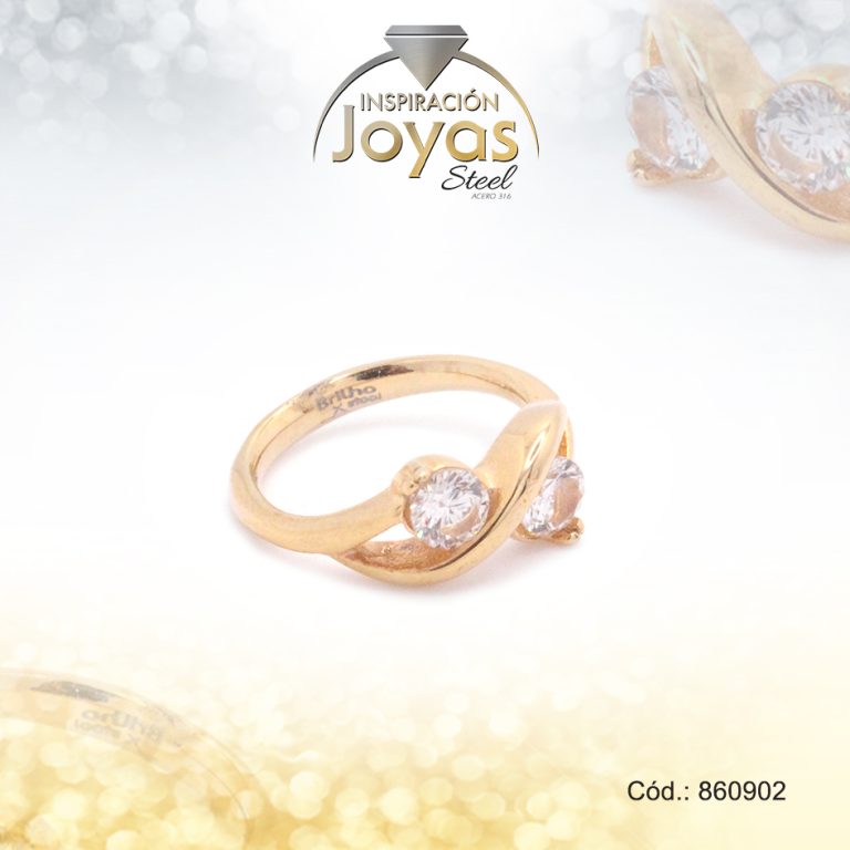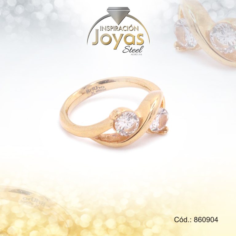 Anillo de Acero Variado Circón Dorado Doble Talla 6 – 860904