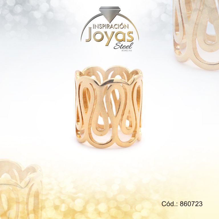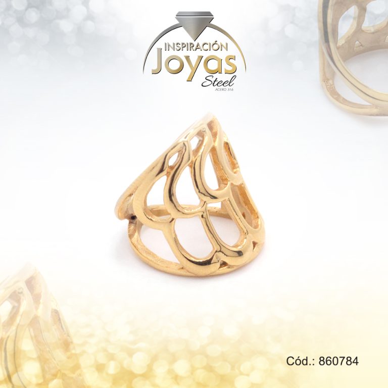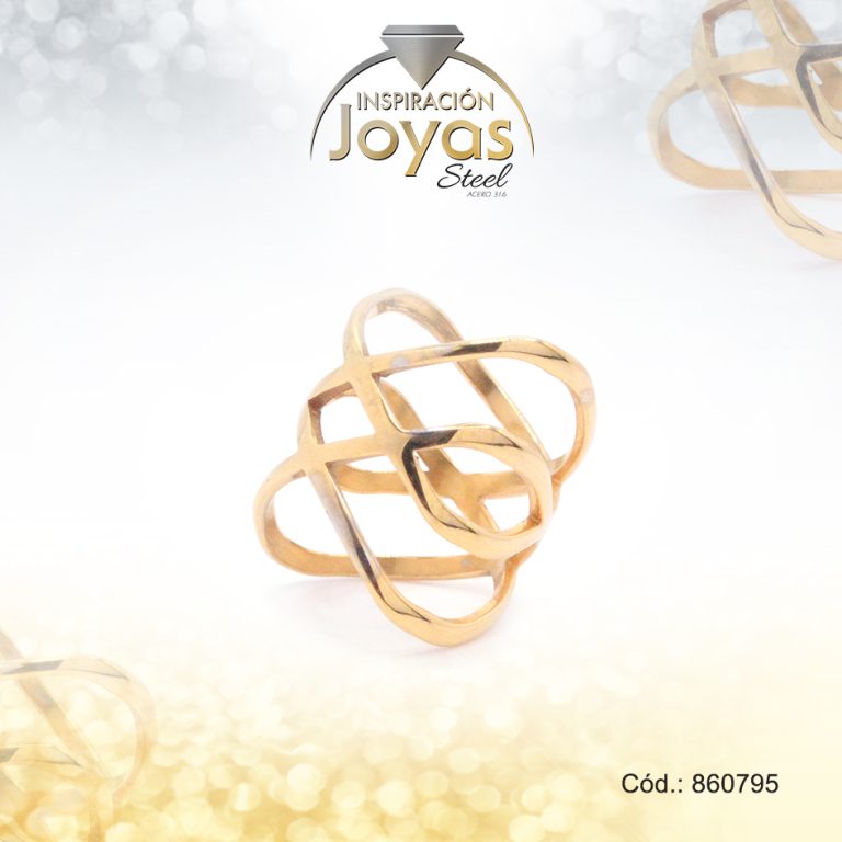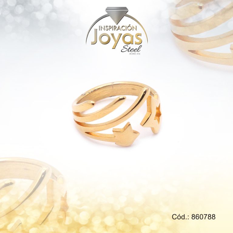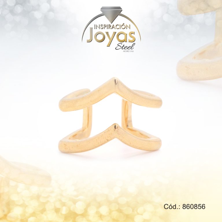 Anillo de Acero Variado Dorado Doble V Talla 8 – 860857