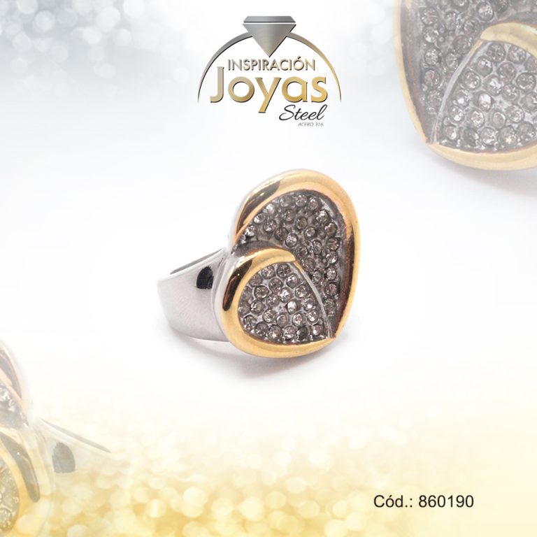 Anillo de Acero Variado Micro Circón 2 Tonos Talla 6 – 860190