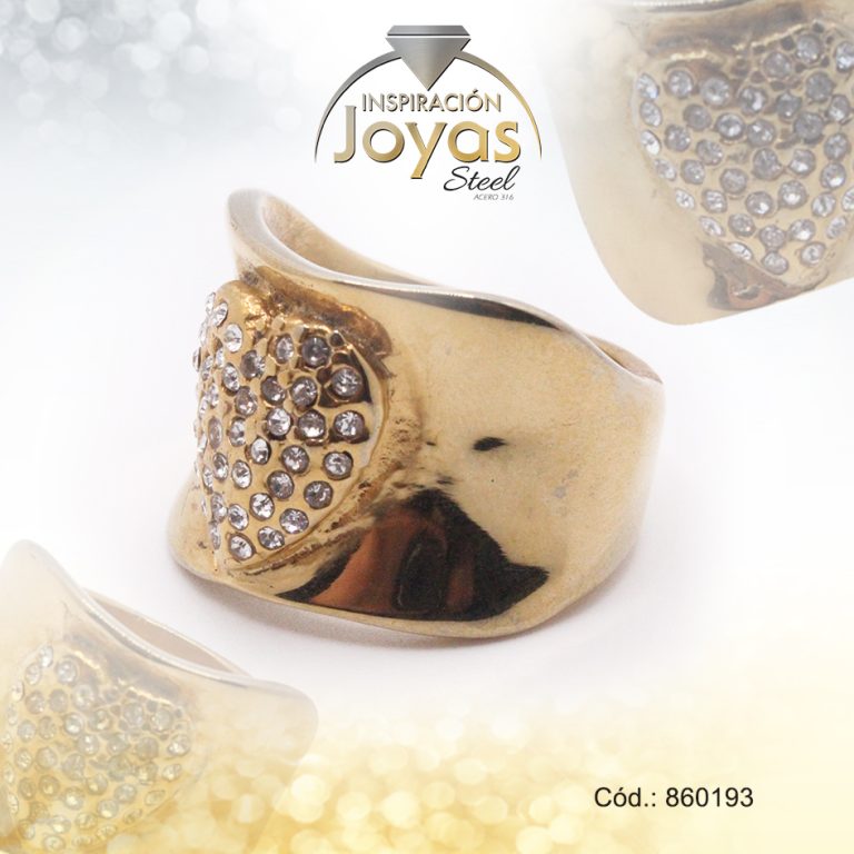 Anillo de Acero Variado Micro Circón Dorado Talla 8 – 860193