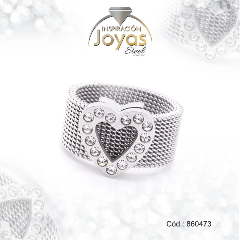 Anillo de Acero Variado Malla Plateado Corazón Negro Talla 8 – 860475