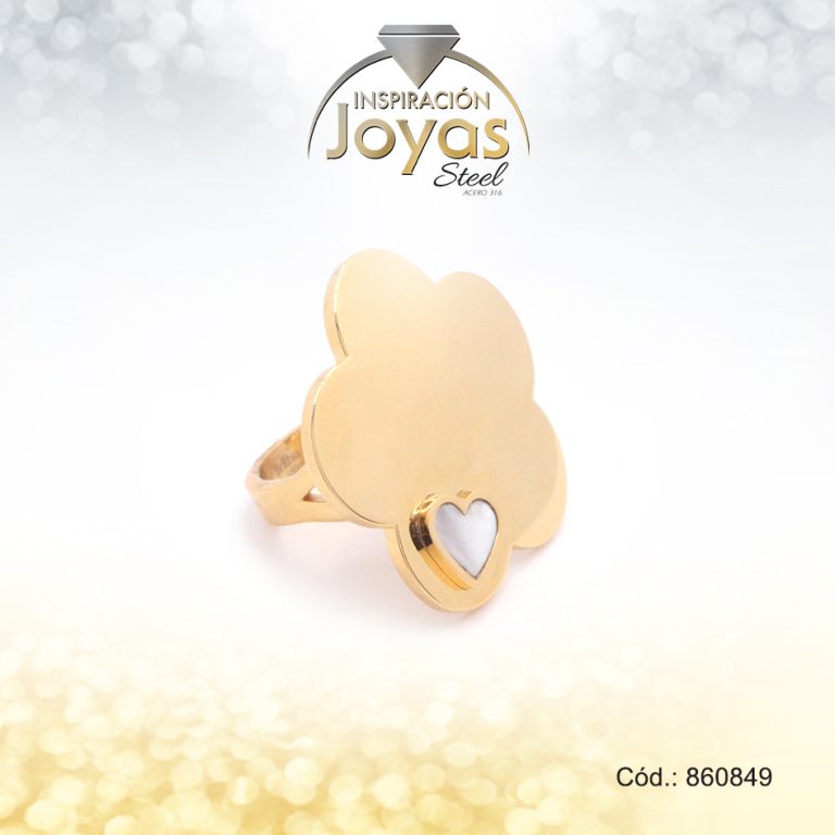 Anillo de Acero Variado Nácar Dorado Flor Talla 6 – 860847