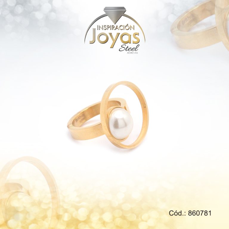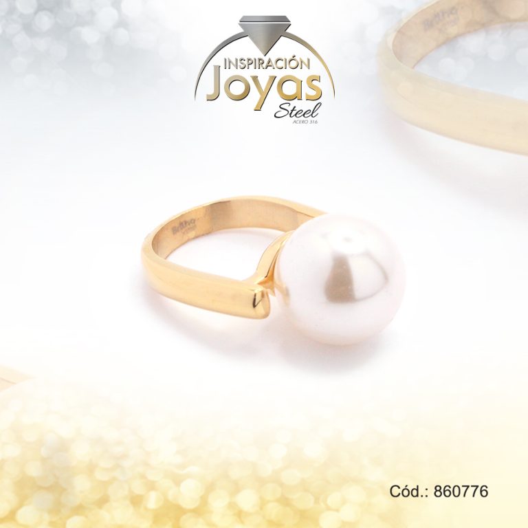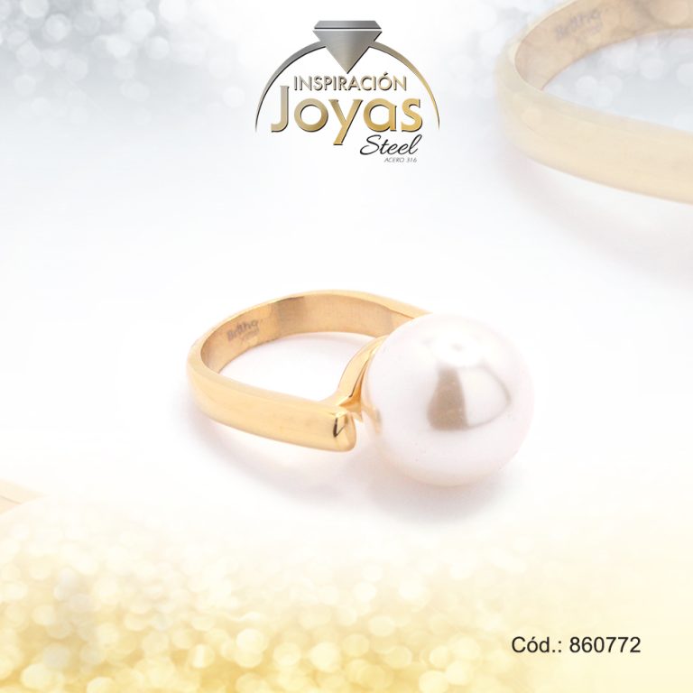 Anillo de Acero Variado Perla Dorado Esfera Talla 9 – 860775