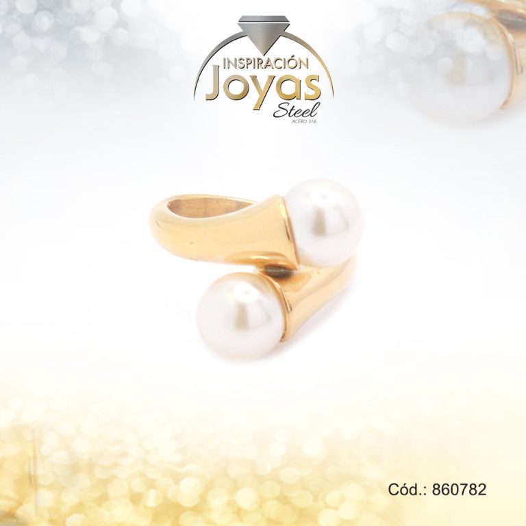 Anillo de Acero Variado Perla Dorado Doble Talla 11 – 860783