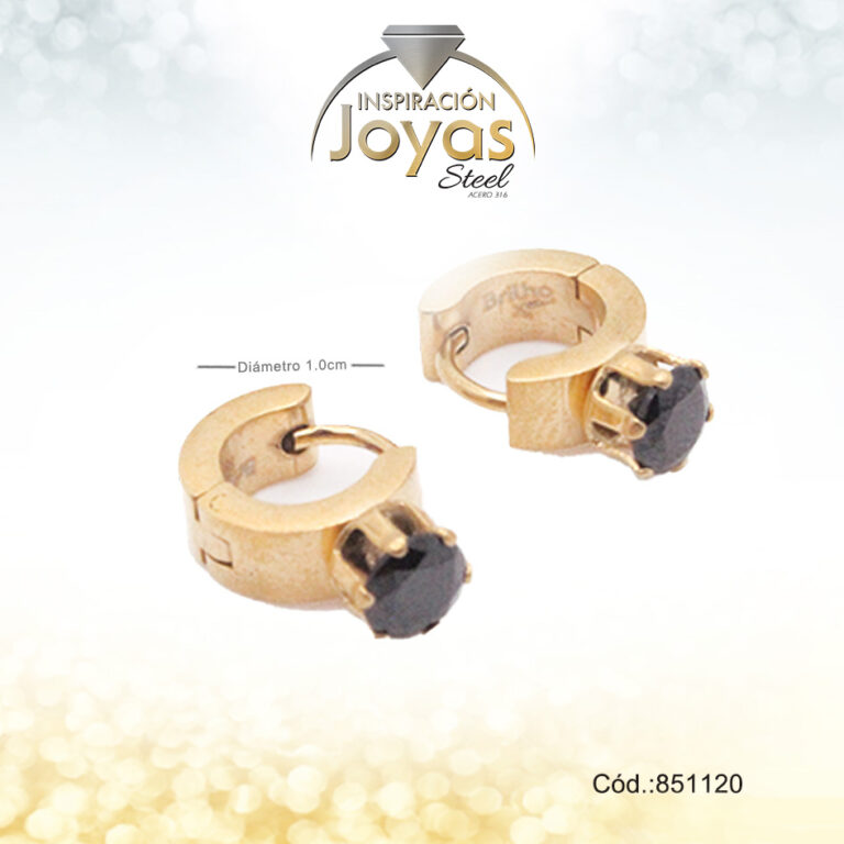 Argolla de Acero Huggies con Circón Dorado Círculo Negro – 851120