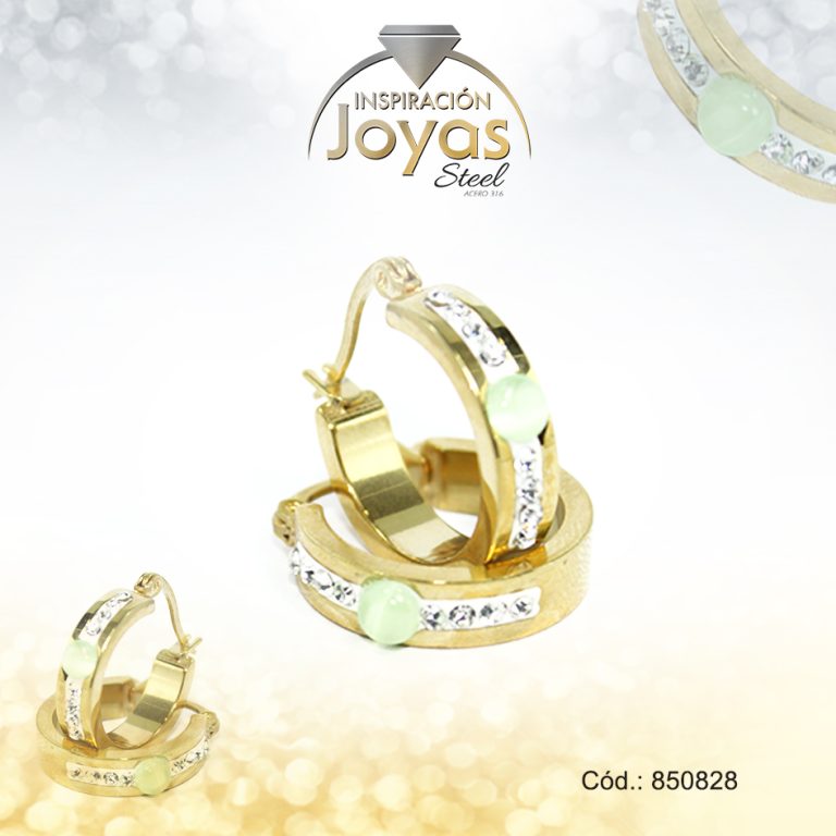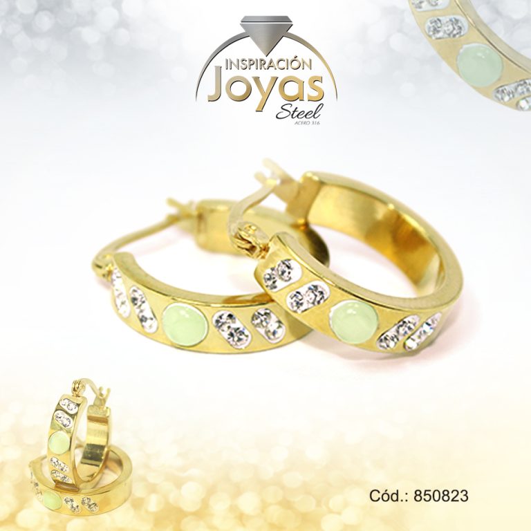 Argolla de Acero Aleación Ojo De Gato Dorado Círculo Verde – 850823