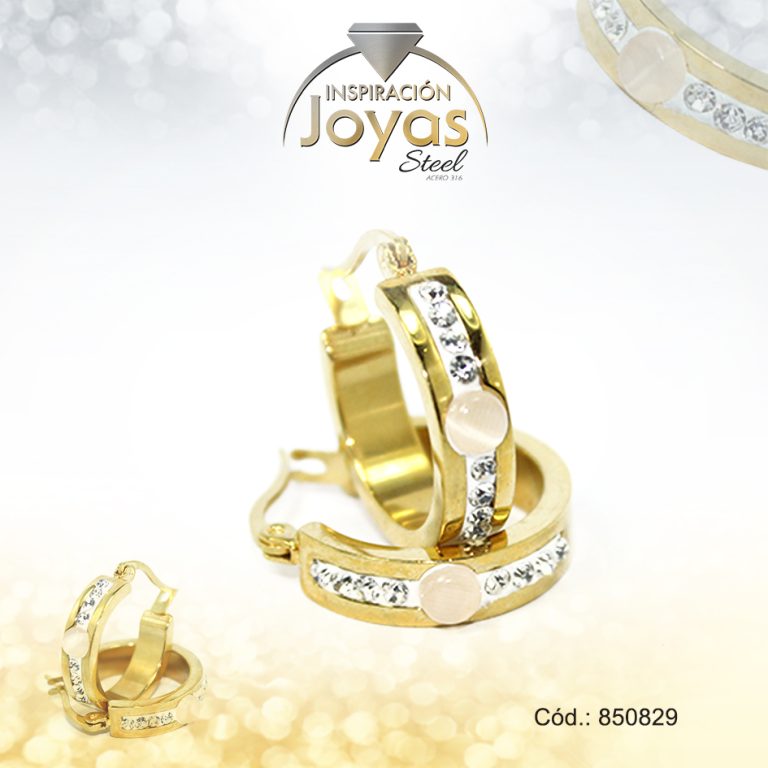 Argolla de Acero Aleación Ojo De Gato Dorado Círculo Blanco – 850820