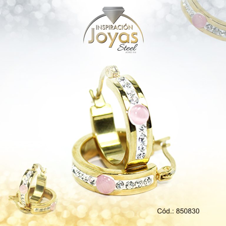 Argolla de Acero Aleación Ojo De Gato Dorado Círculo Rosado – 850830